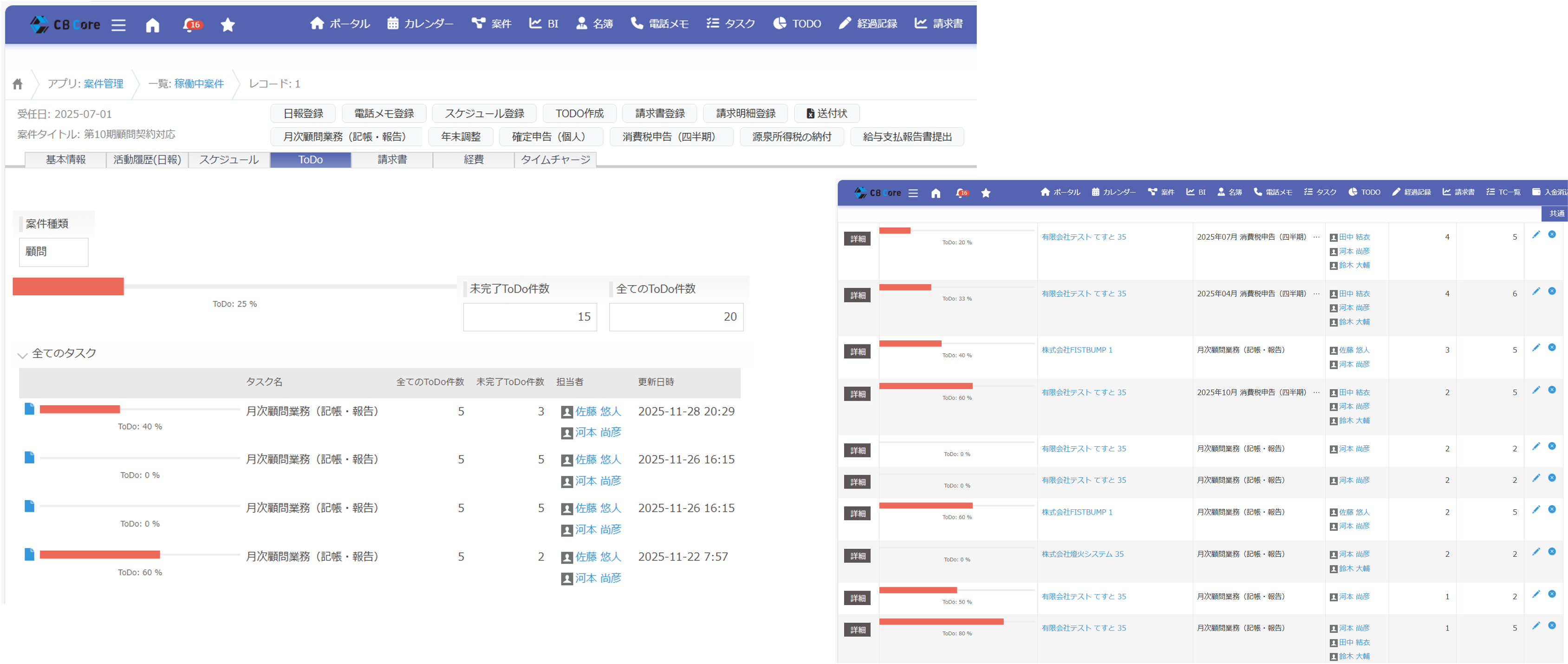 顧問先情報管理から進捗管理、タスク・スケジュール管理、