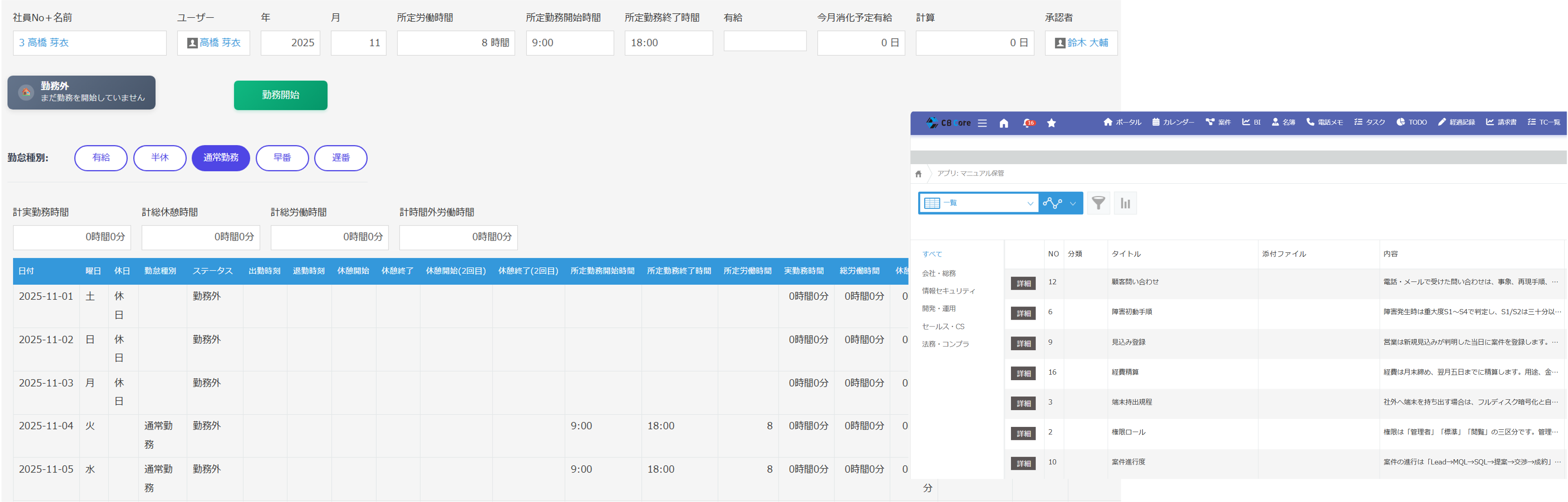 - 日報や勤怠管理が手作業で、集計に時間がかかる